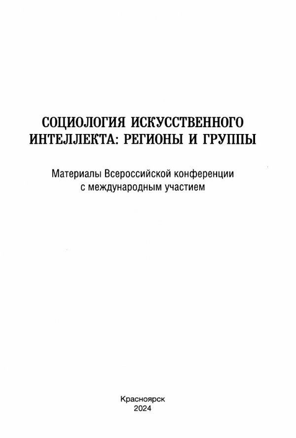 Социология искусственного интеллекта: регионы и группы : материалы Всероссийской конференции с…