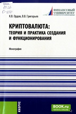 Криптовалюта: теория и практика создания и функционирования : монография