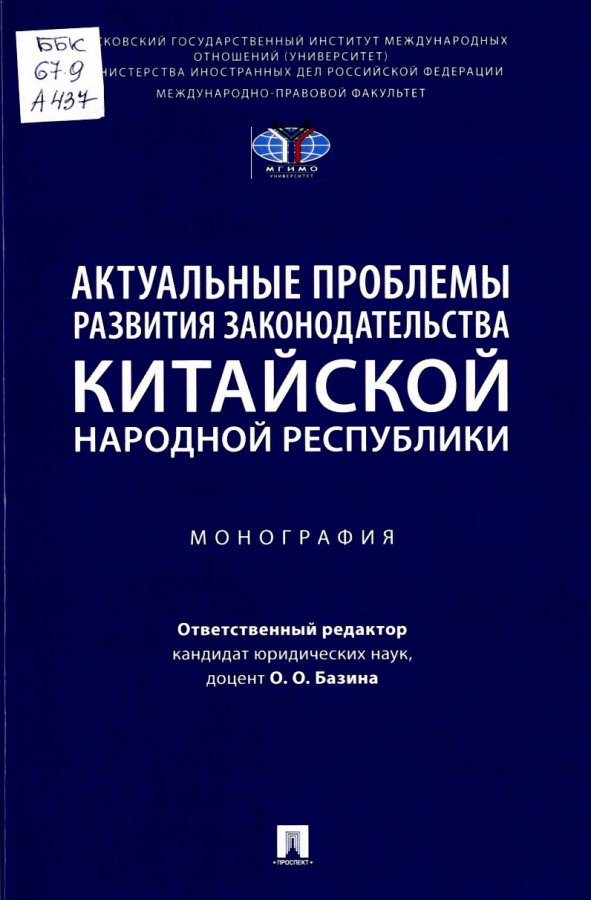 Актуальные проблемы развития законодательства Китайской Народной Республики : монография