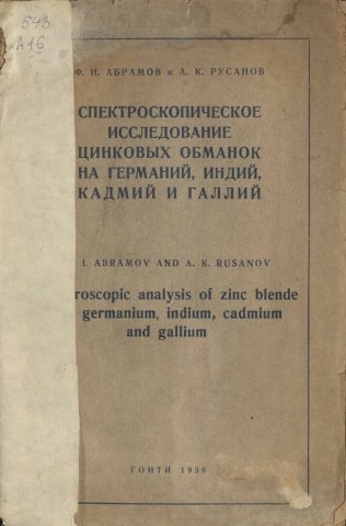 Спектроскопическое исследование цинковых обманок на германий, индий, кадмий и галлий
