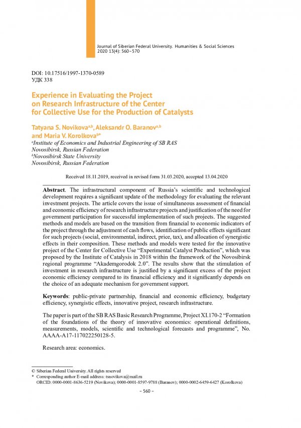 авторы: Novikova, Tatyana S.; Baranov, Aleksandr O.; Korolkova, Maria V. и др. год: 2020 источник: Журнал Сибирского федерального университета. Гуманитарные науки. Journal of Siberian Federal University. Humanities & Social Sciences;2020 13 (4) база данных: Архив электронных ресурсов СФУ тип: статья из журнала