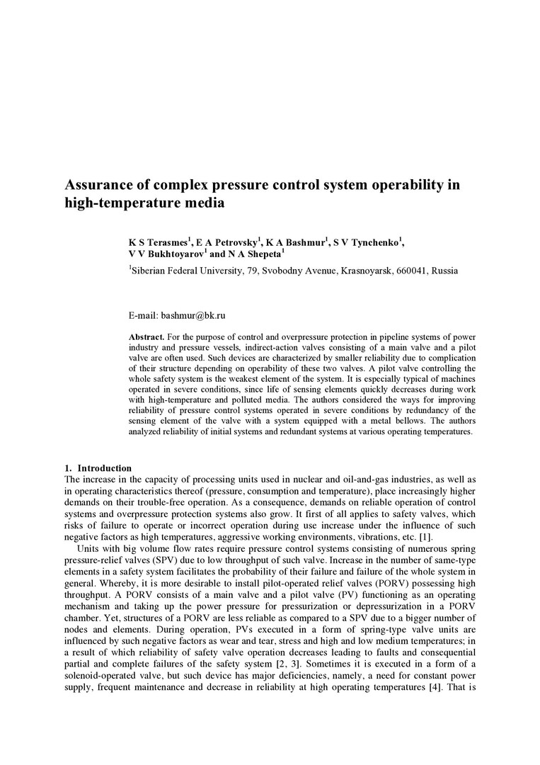 Assurance of complex pressure control system operability in high-temperature media