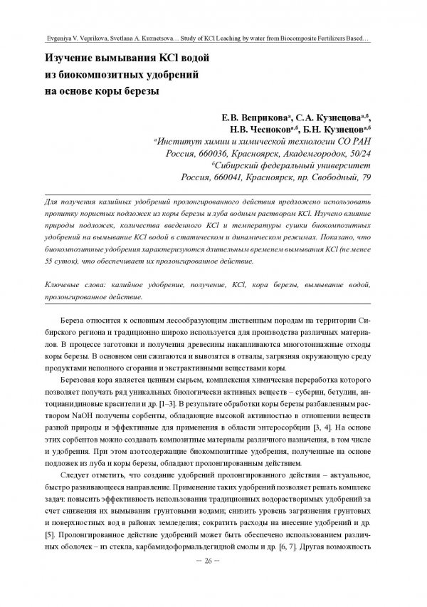пропитку пористых подложек из коры березы и луба водным раствором KCl. Изучено влияние
