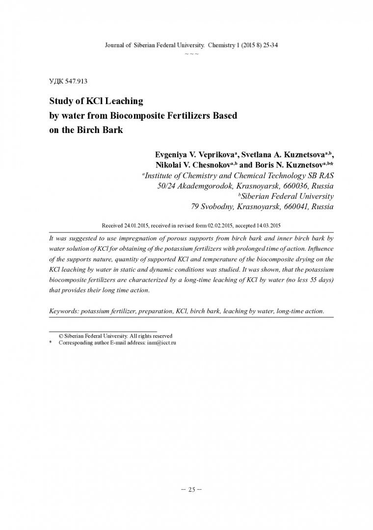 biocomposite fertilizers are characterized by a long-time leaching of KCl by water (no less 55 days)