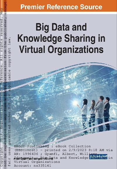 Библиографическое описание:Big data and knowledge sharing in virtual organizations / editor: Albert Gyamfi, Idongesit Williams. - Электрон. текстовые дан. - Hershey : IGI Global, 2019. - 1 online resource. - Загл. с титул. экрана. - ISBN 9781522575207. - ISBN 1522575200 : Б. ц. - Текст : электронный. Перевод заглавия: Обмен большими данными и знаниями в виртуальных организациях Примечания о происхождении: Коллекция цифровых книг Ebsco ebook (централизованная подписка 2023 г., бессрочный доступ), НБ СФУ