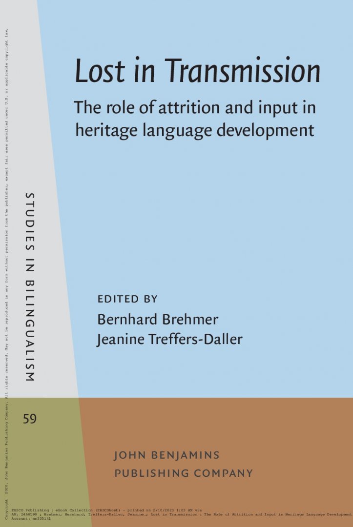Библиографическое описание:Lost in transmission: the role of attrition and input in heritage language development / editor.: B. Brehmer, J. Treffers-Daller. - Электрон. текстовые дан. - Amsterdam ; Philadelphia : John Benjamins Publishing Company, 2020. - 1 online resource (viii, 276 pages). - Загл. с титул. экрана. - Includes bibliographical references and indexes. - ISBN 9789027261359. - ISBN 9027261350 : Б. ц. - Текст : электронный. Перевод заглавия: Утрачено при передаче: роль истощения и вклада в развитие языка наследия Примечания о происхождении: Коллекция цифровых книг Ebsco ebook (централизованная подписка 2023 г., бессрочный доступ), НБ СФУ
