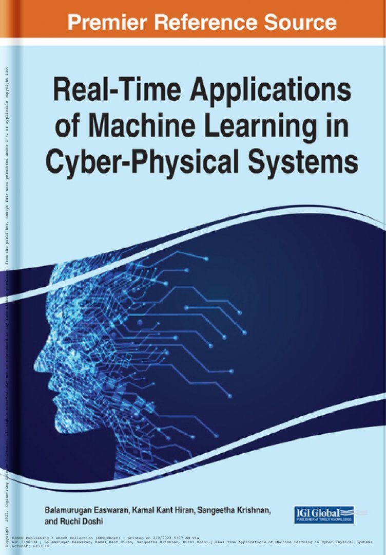 - Real-time applications of machine learning in cyber physical systems / Balamurugan Easwaran, University of Africa, Toru-Orua, Nigeria Kamal Hiran, Sir Padampat Singhania University, India, Sangeetha Krishnan, University of Africa, Toru-Orua, Nigeria, Ruchi Doshi, Azteca University, Mexico -- Design of machine learning model for healthcare index during COVID-19 / Somya Choubey, Manipal University Jaipur, India, Vaibhav Bhatnagar, Manipal University Jaipur, India, Nishu Gupta, Manipal University Jaipur, India, Ity Patni, Manipal University Jaipur, India -- Cyber physical system threat modeling and analysis to track cyber criminal and terrorist activity on smart grid systems / Romil Rawat, Shri Vaishnav Vidyapeeth Vishwavidyalaya, India, Vinod Mahor, IPS College of Technology and Management, Gwalior, India, Shrikant Telang, Shri Vaishnav Vidyapeeth Vishwavidyalaya, India, Anil Kumar, Government Engineering College,Bharatpur, Rajasthan,India, Kiran Pachlasiya, NRI institute of Science and Technology, Bhopal, India, Mukesh Chouhan, Government Polytechnic College, Sheopur (M P), India.