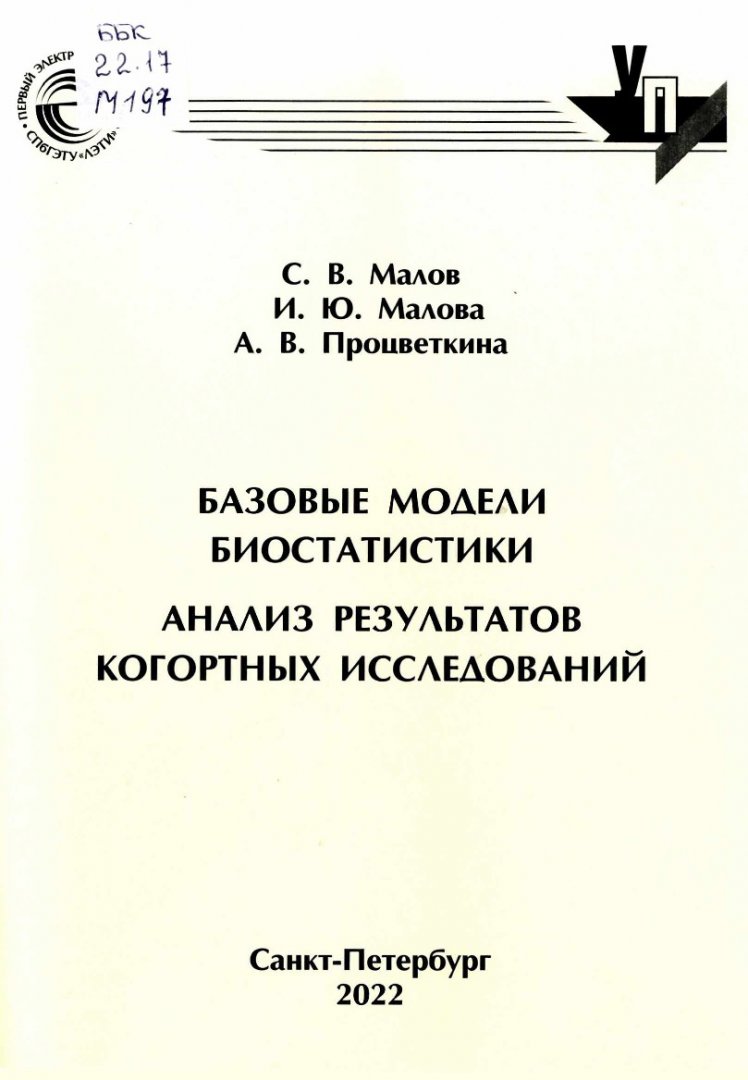 Библиографическое описание:Малов, Сергей Васильевич. Базовые модели биостатистики : анализ результатов когортных исследований : учебное пособие / С. В. Малов, И. Ю. Малова, А. В. Процветкина ; Минобрнауки России, Санкт-Петербург. гос. электротехн. ун-т "ЛЭТИ" им. В. И. Ульянова (Ленина). - Санкт-Петербург : СПбГЭТУ "ЛЭТИ", 2022. - 71 с. : табл. - (Учебное пособие). - Библиогр.: с. 70. - 93 экз. - ISBN 978-5-7629-2966-0 : 66.96 р. - Текст : непосредственный.