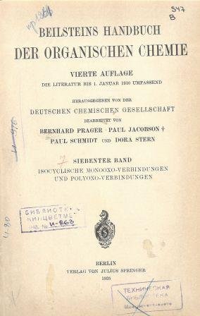 - Beilsteins Handbuch der Organischen Chemie : die Literatur bis 1. Januar 1910 Umfassend. Bd. 7. Isocyclische Monooxo-Verbindungen und Polyoxo-Verbindungen