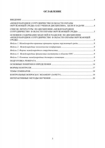 Ключевые слова:международно-правовые основы охраны окружающей среды, международные экологические конференции, семинарские занятия, учебно-методические пособия