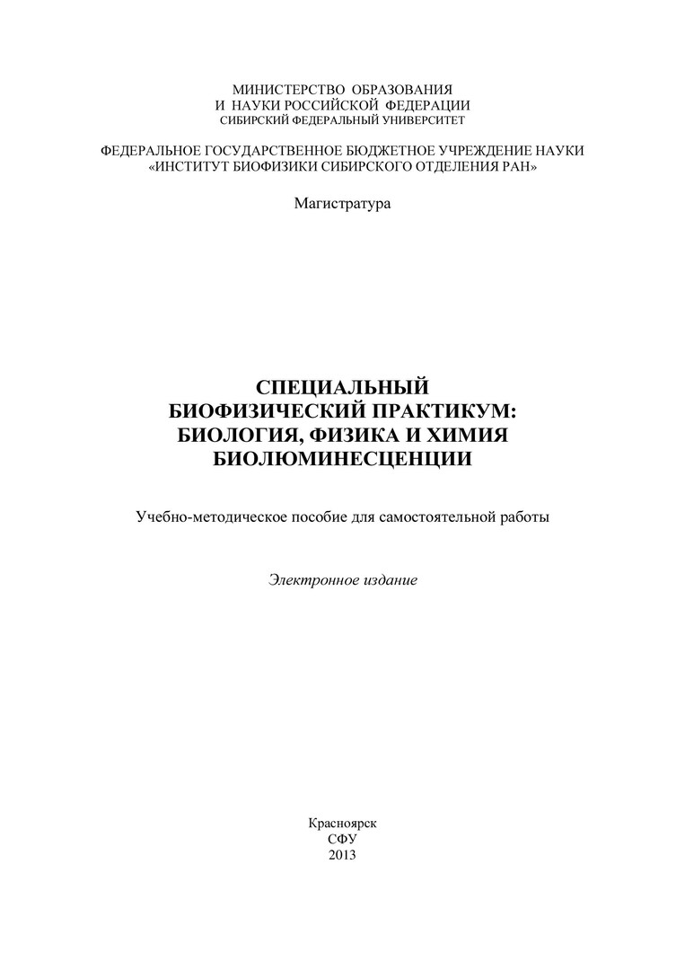 Специальный биофизический практикум: биология, физика и химия биолюминесценции : учеб.-метод. пособие для самостоят. работы [студентов напр. подг. 020400.68 «Биология», 011200.68 «Физика»]