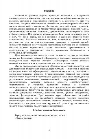 Аннотация:Цель изучения дисциплины – на основе системного подхода дать научные знания по физиологии растений; сформировать понимание закономерностей жизнедеятельности растений; раскрыть молекулярные основы сложных функций и механизмов их регуляции в системе целого организма. Предназначено для студентов очной формы обучения специальности 020801.65 – Экология.