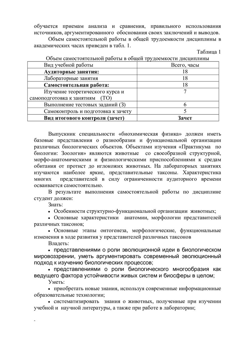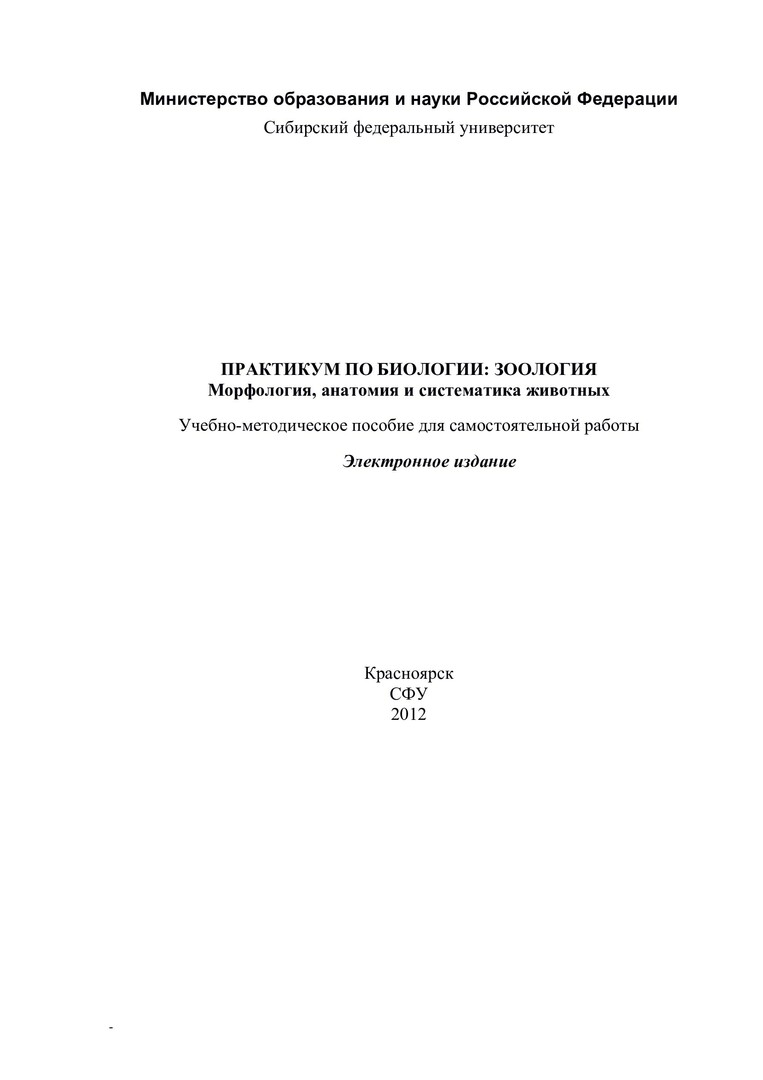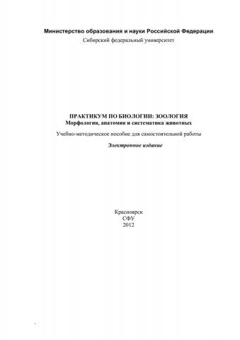 Практикум по биологии: зоология. Морфология, анатомия и систематика животных : учеб.-метод. пособие для самостоят. работы студентов по специальности 010708.65 "Биохимическая физика"