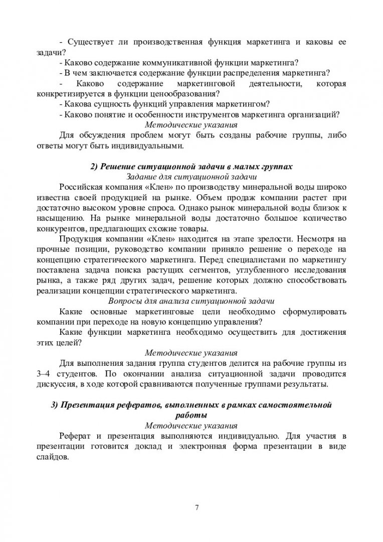 Маркетинг : учеб.-метод. пособие [для семинар. занятий студентов спец. 080105.65 «Финансы и кредит», 080107.65 «Налоги и налогообложение», 080109.65 «Бухгалтерский учет, анализ и аудит»]