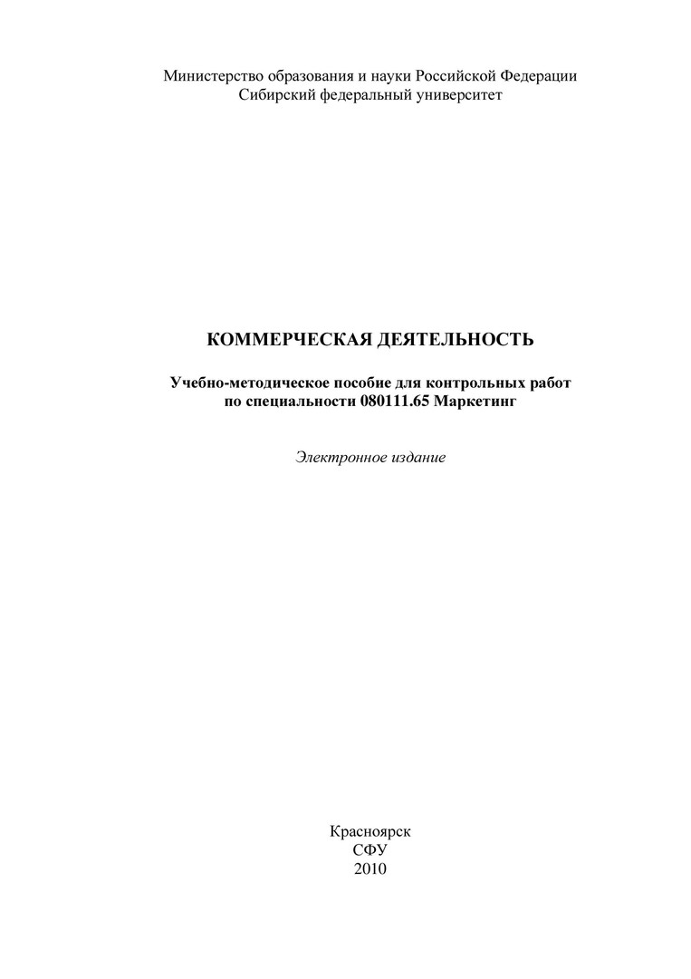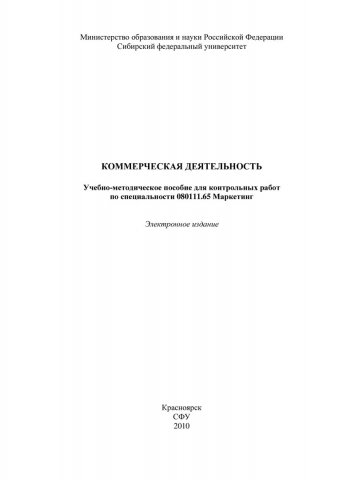 Библиографическое описание:Коммерческая деятельность : учеб.-метод. пособие для контрол. работ по спец. 080111.65 "Маркетинг" / Сиб. федерал. ун-т ; сост. К. Я. Ветцель. - Электрон. текстовые дан. (PDF, 74 Кб). - Красноярск : СФУ, 2010. - Загл. с титул. экрана. - Б. ц. - Текст : электронный.