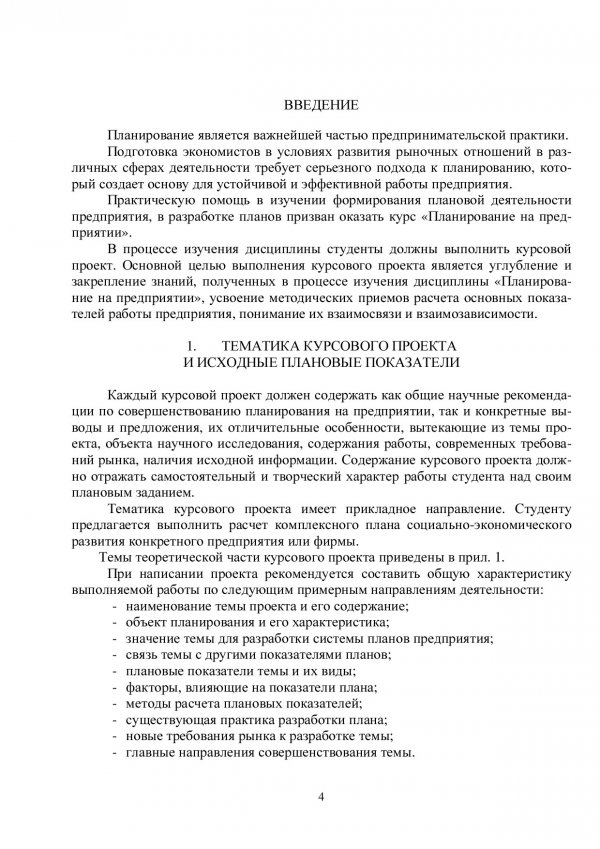 Планирование на предприятии : учеб.-метод. пособие для курс. проектирования [для студентов спец. 080502.65.19.00 «Экономика и управление на предприятии строительства» и напр. 080100.62.09.09 «Экономика предприятий и организаций (строительство)»]