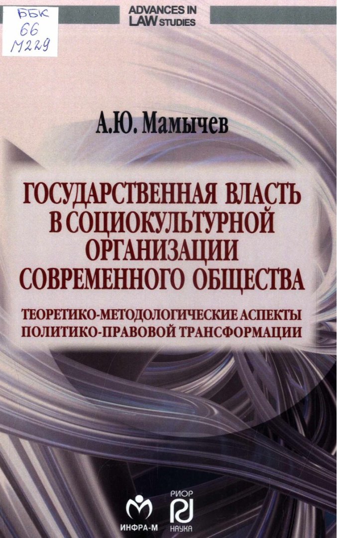 Библиографическое описание:Мамычев, Алексей Юрьевич. Государственная власть в социокультурной организации современного общества : теоретико-методологические аспекты политико-правовой трансформации : монография / А. Ю. Мамычев. - Москва : РИОР : ИНФРА-М, 2025. - 289 с. - (Advances in Law Studies). - Библиогр.: с. 271-288 и в подстроч. примеч. - 12 экз. - ISBN 978-5-369-01737-1 (в пер.) : 1737.00 р. - Текст : непосредственный.