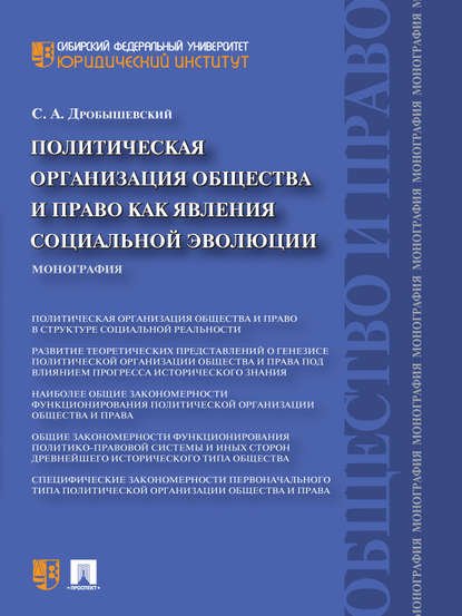 Библиографическое описание:Дробышевский, Сергей Александрович. Политическая организация общества и право как явления социальной эволюции : монография / С. А. Дробышевский ; Сиб. федер. ун-т, Юрид. ин-т. - Москва : Проспект, 2015. - 271 с. - (Общество и право). - Библиогр.: с. 367-271. - ISBN 978-5-392-13103-7 : 403.00 р., 170.00 р. - Текст : непосредственный.