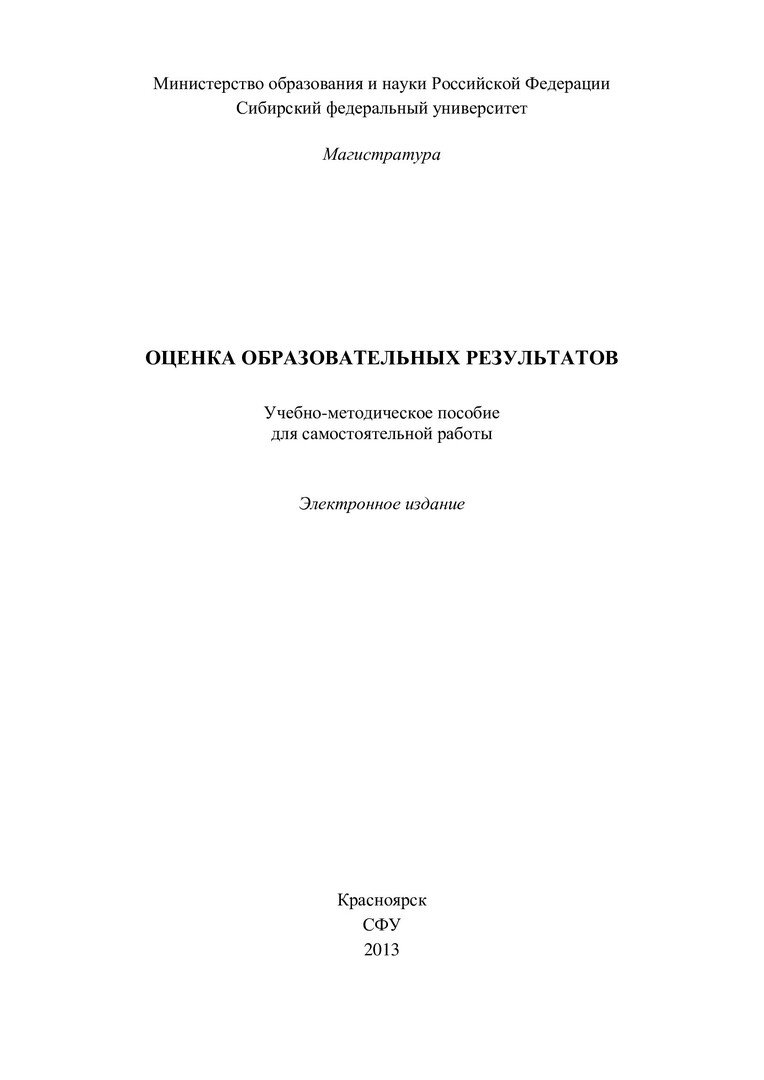 Библиографическое описание:Оценка образовательных результатов : учеб.-метод. пособие для самостоят. работы [для студентов напр. 050100.68 «Педагогическое образование»] / Сиб. федерал. ун-т ; сост. Н. Г. Шилина. - Электрон. текстовые дан. (PDF, 680 Кб). - Красноярск : СФУ, 2013. - (Магистратура). - Загл. с титул. экрана. - Библиогр.: с. 33-34. - Изд. № 2013-1668 : Б. ц. - Текст : электронный.