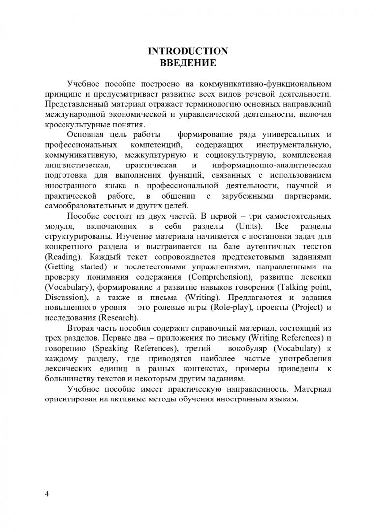 Аннотация:Представлен модульный принцип обучения английскому языку в сфере деловой коммуникации. Включены аутентичные тексты экономического профиля и задания к ним. Предназначено для подготовки студентов, обучающихся по направлению 38.03.01 «Экономика» (профиль 38.03.01.04 «Мировая экономика»); 38.03.02. «Менеджмент» (профиль 38.03.02.05 «Международный менеджмент»).