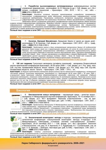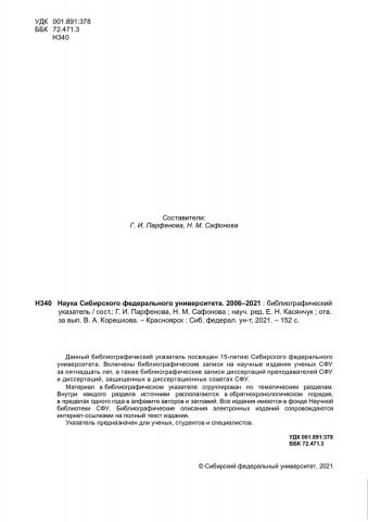 Наука Сибирского федерального университета, 2006-2021 : библиографический указательбиблиография