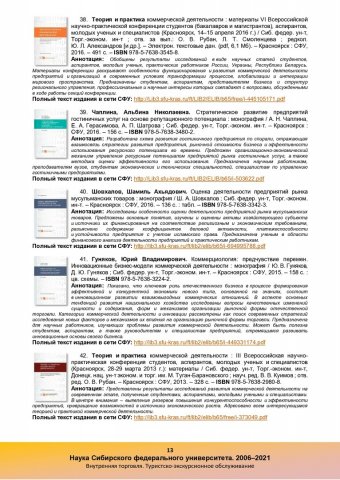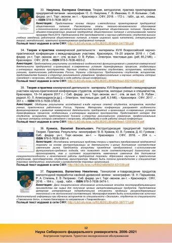 Библиографическое описание: Наука Сибирского федерального университета, 2006-2021 : библиографический указатель / Министерство науки и высшего образования Российской Федерации, Сибирский федеральный университет, Научная библиотека ; [сост.: Г. И. Парфёнова, Н. М. Сафонова ; науч. ред. Е. Н. Касянчук ; отв. за вып. В. А. Корешкова]. - Красноярск : СФУ, 2021. - 151 с. : цв. ил. - 100 экз. - 300.00 р. - Текст : непосредственный + Текст : электронный.