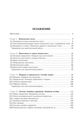 Ключевые слова: комплексные числа, многочлены (матем.), матрицы (матем.), линейные уравнения, линейная алгебра, линейные пространства, евклидовы пространства, векторная алгебра, геометрия аналитическая, аналитическая геометрия