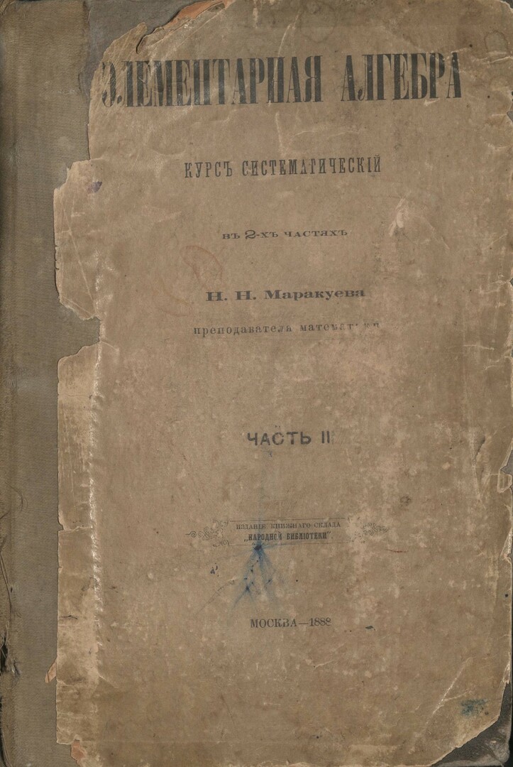 Библиографическое описание:Маракуева Н. Н. Элементарная алгебра : курс систематический: в 2 частях / Н. Н. Маракуева. - Электрон. текстовые дан. (pdf ; 300,0 Мб). - Москва : Издание книжного склада "Народная библиотека", 1886 (на пер. 1887) - 1887 (на пер. 1888) . - Загл. с титул. экрана. - Электрон. версия печ. публикации . - Текст : электронный. Ч. 2. - 1887 (на пер. 1888) (Типография Е. Г. Потапова в Москве). - 506, II с. - (в пер.) : 10.00 р.
