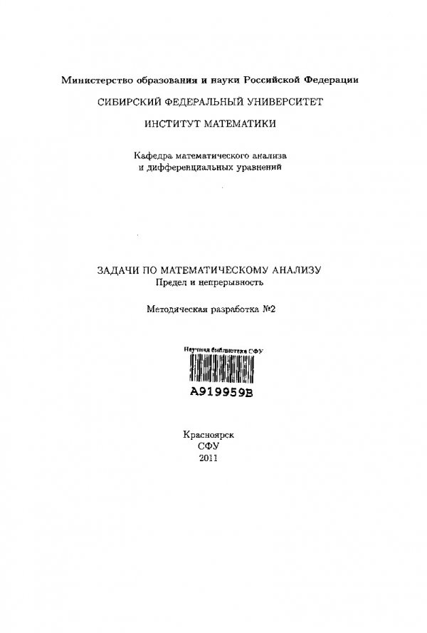 Библиографическое описание:Задачи по математическому анализу : [сб. задач : в 4-х ч.] / Сиб. федерал. ун-т, Ин-т математики. - Красноярск : СФУ, 2011. - Текст : непосредственный. Методическая разработка № 2 : Предел и непрерывность / сост. В. К. Дуракова [и др.]. - 2011. - 153 с. - 150 экз. - : 106.50 р.