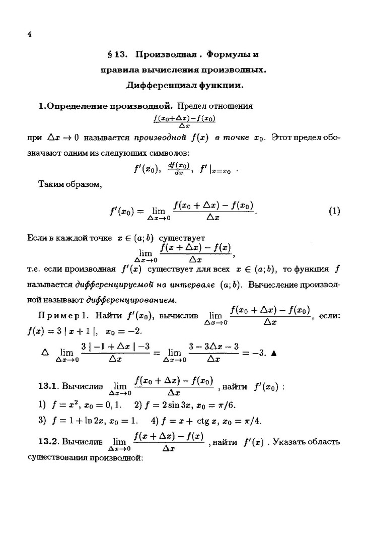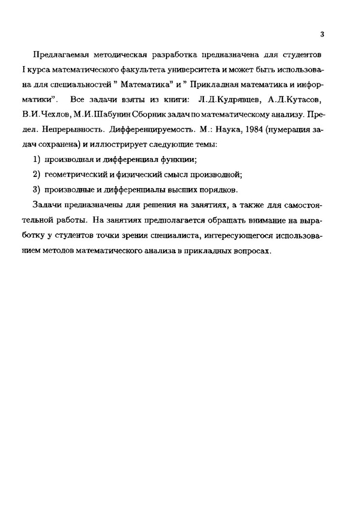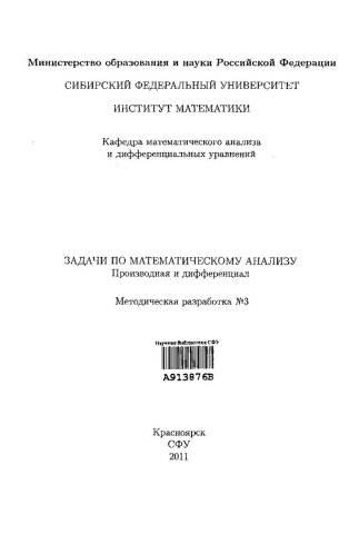 - Задачи по математическому анализу : сб. задач : в 4-х ч.. Методическая разработка № 3. Производная и дифференциал