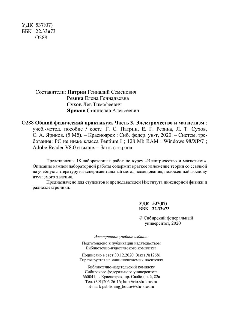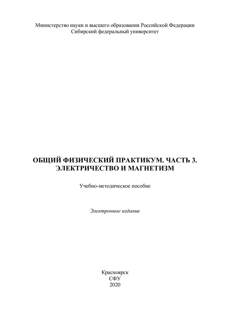 - Общий физический практикум : учебно-методическое пособие. Ч. 3. Электричество и магнетизм : лабораторные работы
