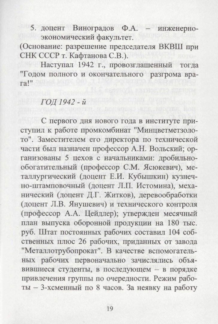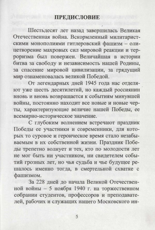 Аннотация: Посвящено 60-летию Победы в Великой Отечественной войне. Изложены впервые на основе архивных материалов, поисковых исследований и личных воспоминаний автора исторические факты самоотверженного участия профессорско-преподавательского состава, студентов и сотрудников Московского института цветных металлов и золота в Великой Отечественной войне 1941 - 1945 гг. Освещен с благодарной памятью вклад фронтовиков и тружеников тыла в послевоенные годы в становление и развитие уникального российского вуза, переведенного из Москвы в Красноярск. Для ветеранов войны и труда, молодого поколения защитников отечества и тех, кто интересуется легендарной историей военного лихолетья и Университета цветных металлов и золота.