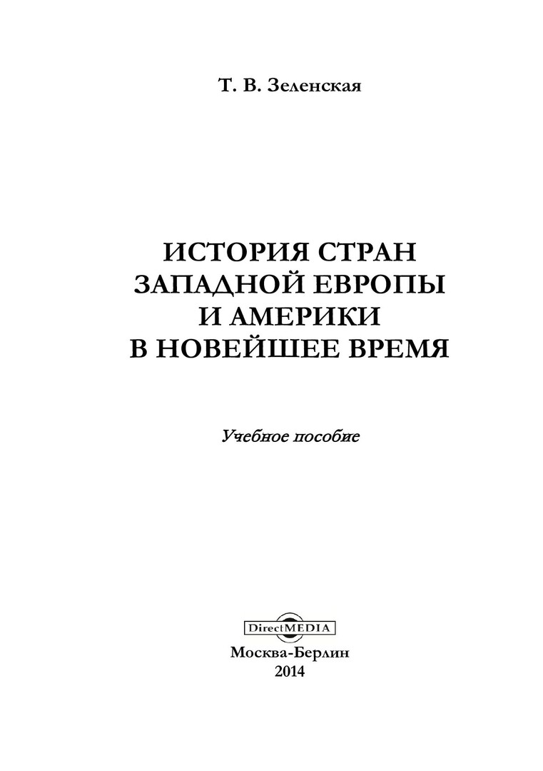 Библиографическое описание:Зеленская, Татьяна Вячеславовна. История стран Западной Европы и Америки в новейшее время : учебное пособие / Т. В. Зеленская. - Электрон. текстовые дан. (3,43 Мб). - Москва ; Берлин : Директ-Медиа, 2014. - Загл. с титул. экрана. - ISBN 978-5-4475-2563-7 : Б. ц. - Текст : электронный.