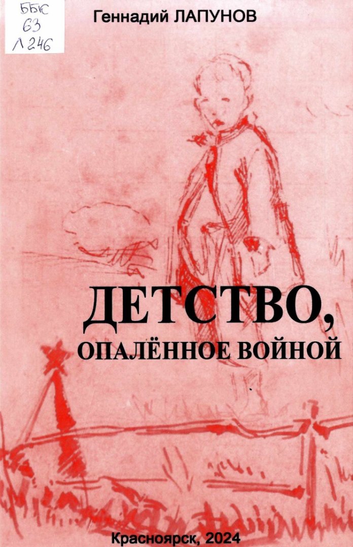 Библиографическое описание:Лапунов, Геннадий Семенович. Детство, опаленное войной / Геннадий Лапунов. - Красноярск : Буква Статейнова, 2024. - 163 с. : фот., фот. цв. - 300 экз. - (в пер.) : 200.00 р. - Текст : непосредственный.