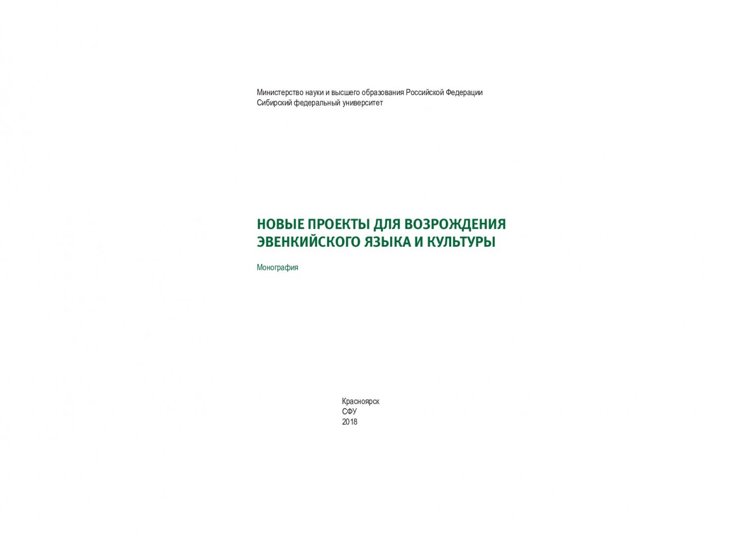 Новые проекты для возрождения эвенкийского языка и культуры : монография