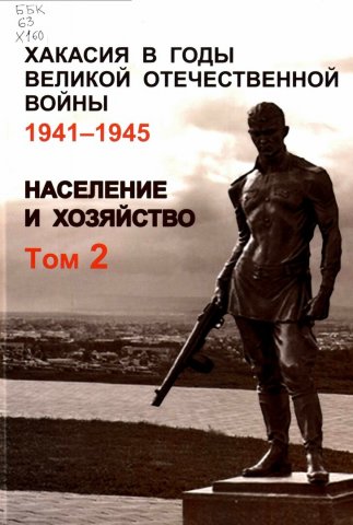 Библиографическое описание:Хакасия в годы Великой Отечественной войны 1941-1945 гг. : [монография] : в 2 томах / Правительство Республики Хакасия, Министерство образования и науки Республики Хакасия, Хакас. науч.-исслед. ин-т языка, лит. и истории. - Абакан : Хакасское книжное издательство имени В. М. Торосова, 2025 - . - ISBN 978-5-6051079-6-5. - Текст : непосредственный. Т. 2 : Население и хозяйство / [В. А. Исупов, В. А. Кышпанаков, Н. С. Майнагашева [и др.] ; науч. ред. В. А. Кышпанаков ; рец.: Г. Е. Корнилов, М. Н. Балдано]. - 2025. - 447 с. : ил., табл., фот. - Библиогр. в конце разд. - 1000 экз. - ISBN 978-5-6051079-1-0 (в пер.) : 360.00 р.