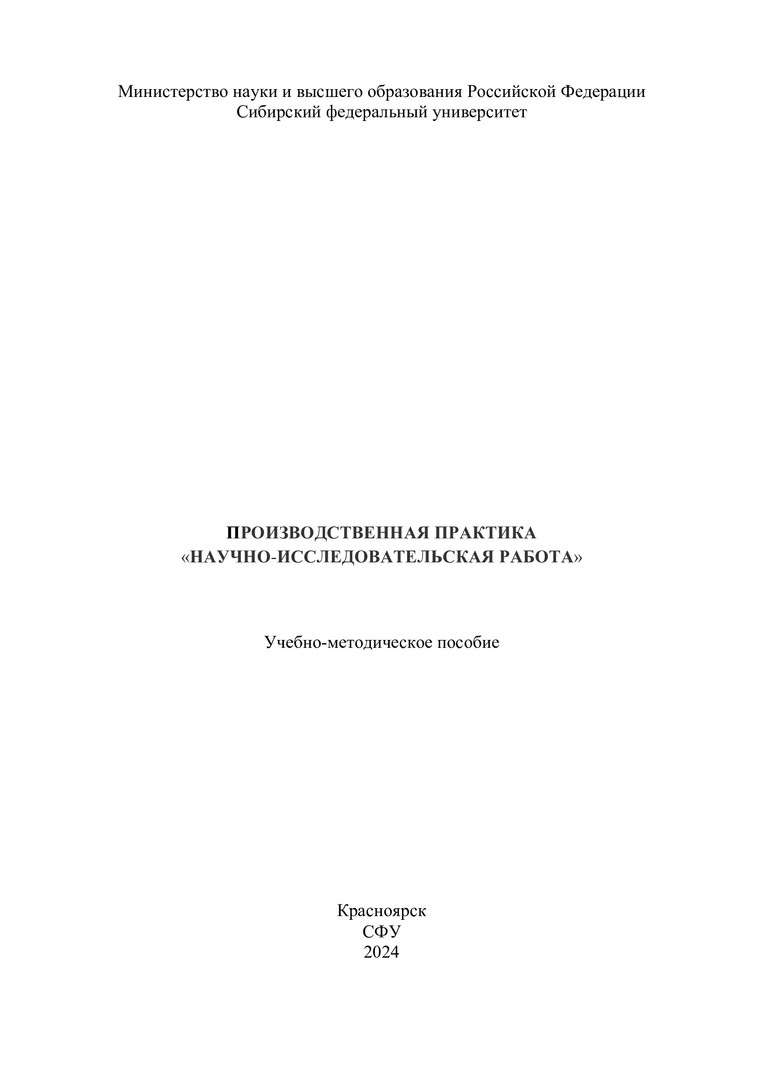 Производственная практика «Научно-исследовательская работа» : учебно-методическое пособие