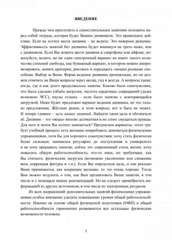 Аннотация: Предназначено для оказания помощи студентам первого курса, которые, в силу различных обстоятельств, не имеют возможности заниматься физическими упражнениями, в соответствии с учебным графиком занятий. Предложенный материал изложен в простой и доступной форме, для студентов, не имеющих большого опыта занятий физическими упражнениями. Рекомендации даны с учётом расположения большинства корпусов университета в зелёной зоне города, но они могут использоваться в любых городских условиях. Адресовано специалистам в области теории и методики физического воспитания, может быть использовано студентами и преподавателями образовательных учреждений системы профессионального образования в сфере физической культуры и спорта.