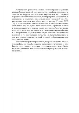 Аннотация:Предлагаемая монография - третья книга, посвященная исследованию актуального феномена - политического информационного противоборства в его языковом выражении. Содержит материалы по общетеоретическим проблемам лингвистики информационно-психологической войны, исследованию этосов противоборствующих сторон, а также различным частным аспектам этого явления. Предназначена прежде всего для людей, профессионально интересующихся проблемами информационно-психологических войн, политиков, общественных деятелей, журналистов, работников образования, но будет также полезна для широкого круга читателей, поскольку способствует пониманию тех опасностей, которые влечет за собой развернутая против России информационно-психологическая война, и осознанию необходимости противостоять ей.