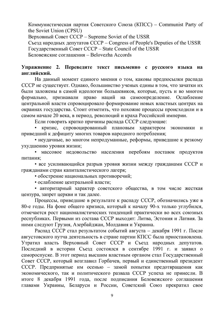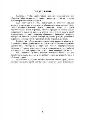 Аннотация: Пособие по общественно-политическому переводу состоит из 7 разделов. Каждый раздел включает тексты для письменного перевода с установочным глоссарием и видео для устного последовательного перевода с установочным глоссарием и предложениями на отработку лексических единиц, приведенных в глоссарии, для перевода с листа. Настоящее учебно-методическое пособие предназначено для обучения общественно-политическому переводу студентов старших курсов переводческих факультетов. Цель настоящего пособия заключается в отработке навыков устного и письменного перевода в общественно-политической сфере.