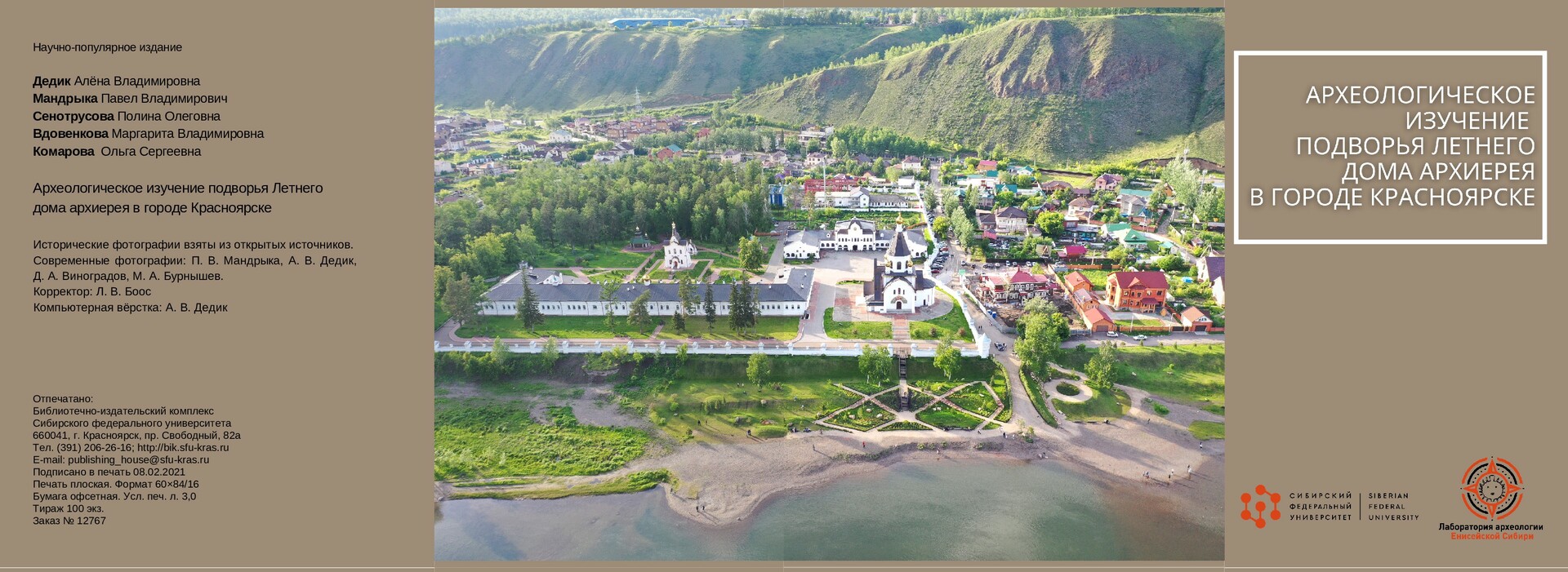 Библиографическое описание: Археологическое изучение подворья Летнего дома архиерея в городе Красноярске / А. В. Дедик, П. В. Мандрыка, П. О. Сенотрусова [и др.]. ; ред. П. В. Мандрыка ; Сибирский федеральный университет, Гуманитарный институт. - Красноярск : СФУ, 2021 (2021-01-13). - 44 с. : цв. ил., фот. цв. - 100 экз. - ISBN 978-5-7638-4463-4 : 240.00 р. - Изд. № 2021-12767. - Текст : непосредственное : электронный.