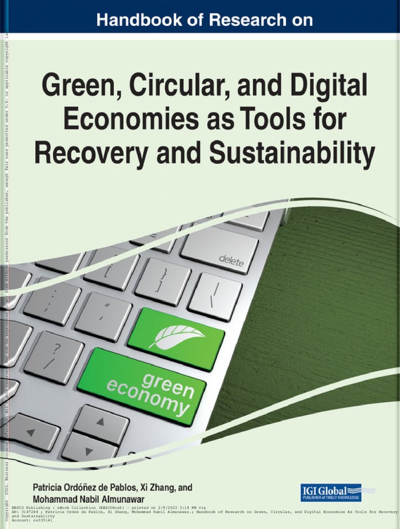 Библиографическое описание:Green, circular, and digital economies as tools for recovery and sustainability / editor: Patricia Ordóñez de Pablos, Xi Zhang, Mohammad Nabil Almunawar. - Электрон. текстовые дан. - [S. l. : s. n.], 2022. - 1 online resource. - Загл. с титул. экрана. - Includes bibliographical references and index. - ISBN 9781799896678. - ISBN 1799896676. - ISBN 9781799896661. - ISBN 1799896668 : Б. ц. - Текст : электронный. Перевод заглавия: "Зеленая", циклическая и цифровая экономика как инструменты восстановления и устойчивости Примечания о происхождении: Коллекция цифровых книг Ebsco ebook (централизованная подписка 2023 г., бессрочный доступ). НБ СФУ