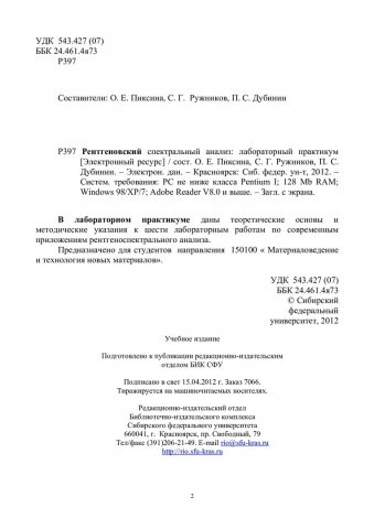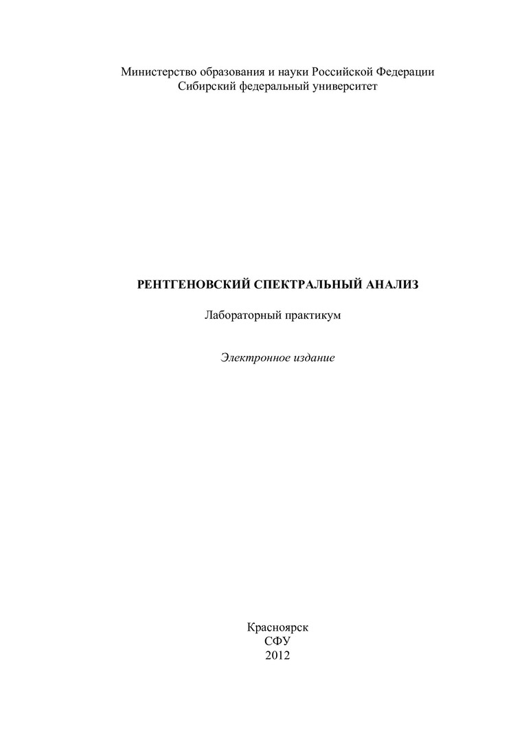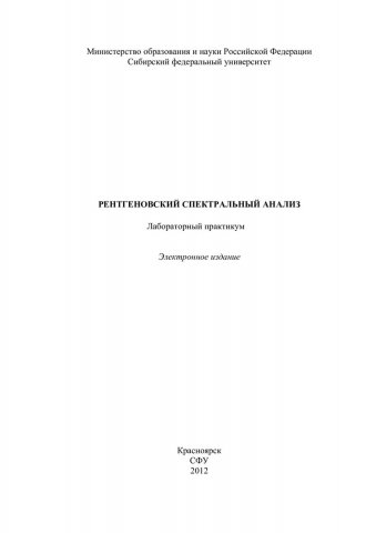 Библиографическое описание:Рентгеновский спектральный анализ : лаб. практикум для студентов напр. 150100 « Материаловедение и технология новых материалов». / Сиб. федерал. ун-т ; сост.: О. Е. Пиксина, С. Г. Ружников, П. С. Дубинин. - Электрон. текстовые дан. (PDF, 1,2 Мб). - Красноярск : СФУ, 2012. - Загл. с титул. экрана. - Библиогр.: с. 40. - Текст : электронный.