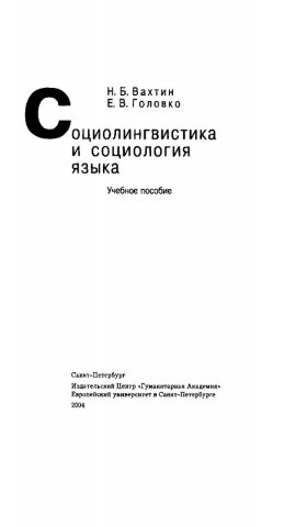 Библиографическое описание: Бахтин, Николай Борисович. Социолингвистика и социология языка / Н. Б. Бахтин, Е. В. Головко. - Электрон. текстовые дан. (PDF, 23,32 Мб). - Санкт-Петербург : Изд-во Европейского университета в Санкт Петербурге, 2004. - 336 с. - Загл. с титул. экрана. - ISBN 5-93762-044-5 : Б. ц. - Текст : непосредственный + Текст : электронный.