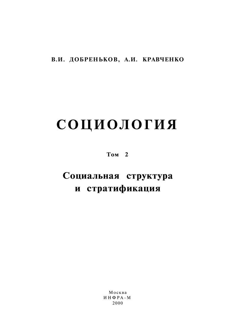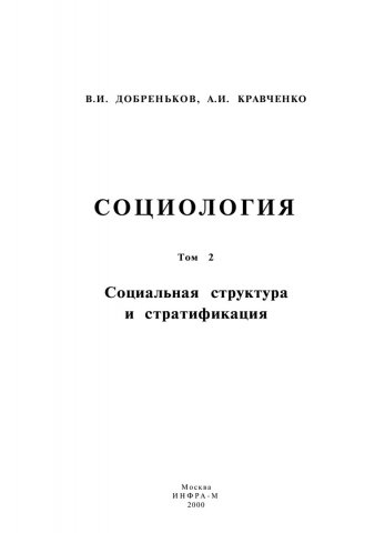 Библиографическое описание:Добреньков, Владимир Иванович. Социология : в 3-х т. / В. И. Добреньков, А. И. Кравченко. - Москва : ИНФРА-М, 2000 - . Т. 2 : Социальная структура и стратификация. - 536 с. - ISBN 5160003649 (в пер.)