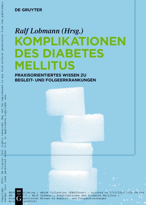 Библиографическое описание: Komplikationen des Diabetes Mellitus : Praxisorientiertes Wissen zu Begleit- und Folgeerkrankungen / ed. R. Lobmann. - Электрон. текстовые дан. - 1515/9783110590951. - Berlin/Boston : Walter de Gruyter GmbH, 2021. - 1 online resource (XVII, 306 pages) : гербы. - Загл. с титул. экрана. - In German. - ISBN 9783110590951. - ISBN 3110590956. - ISBN 311058901X. - ISBN 9783110588996. - ISBN 3110588994. - ISBN 9783110589016 : Б. ц. - Текст : электронный. Перевод заглавия: Осложнения сахарного диабета : практические знания о сопутствующих и последующих заболеваниях Примечания о происхождении: Коллекция цифровых книг Ebsco ebook (централизованная подписка 2023 г., бессрочный доступ). НБ СФУ