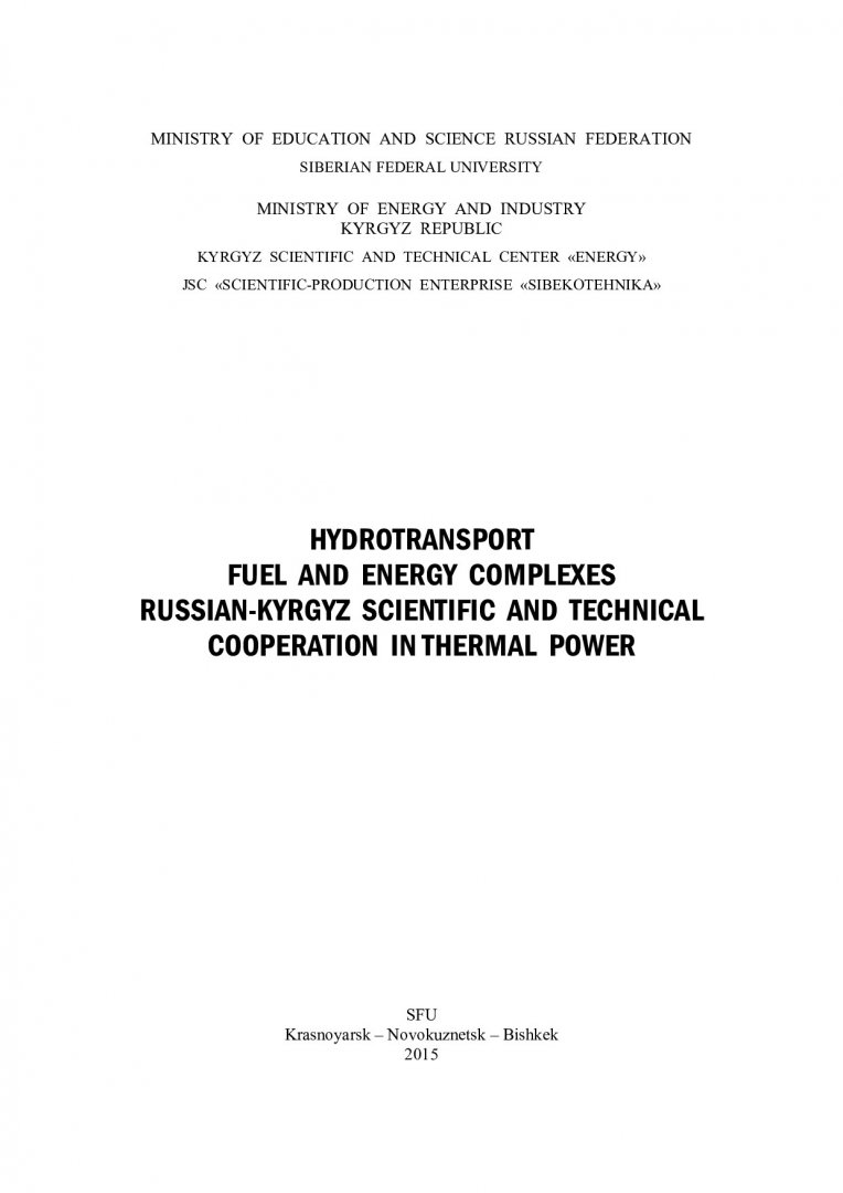 Гидротранспортные топливно-энергетические комплексы. Российско-кыргызское научно-техническое сотрудничество в области теплоэнергетики : монография
