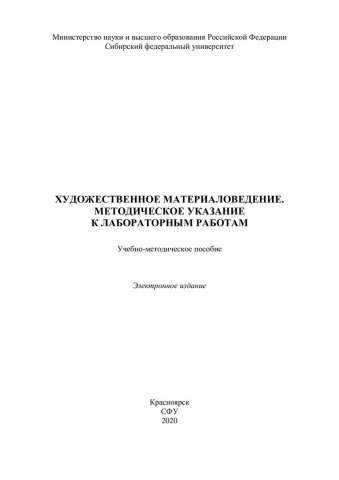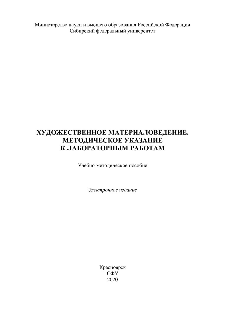 Библиографическое описание:Художественное материаловедение. Методическое указание к лабораторным работам : учебно-методическое пособие / Сиб. федер. ун-т, Политехн. ин-т ; сост. Л. А. Свечникова. - Электрон. текстовые дан. (pdf, 3,7 Мб). - Красноярск : СФУ, 2020 (2020-03-16). - 63 с. - Загл. с титул. экрана. - Изд. № 2020-11203 : Б. ц. - Текст : электронный.