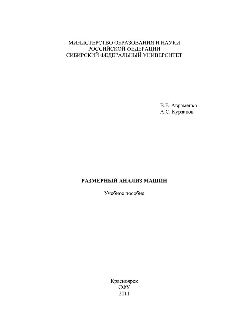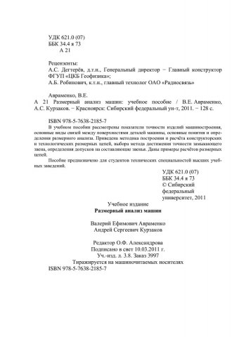Библиографическое описание:Авраменко, Валерий Ефимович. Размерный анализ машин : учеб. пособие / В. Е. Авраменко, А. С. Курзаков ; Сиб. федерал. ун-т. - Электрон. текстовые дан. (4, 1 Мб). - Красноярск : СФУ, 2011. - 128 с. : рис., табл. - Загл. с титул. экрана. - ISBN 978-5-7638-2185-7. - Текст : непосредственный + Текст : электронный.