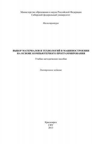 Выбор материалов и технологий в машиностроении на основе компьютерного программирования : учеб.-метод. пособие [для студентов напр. 150400.68.01 «Металловедение и термическая обработка металлов и сплавов»]